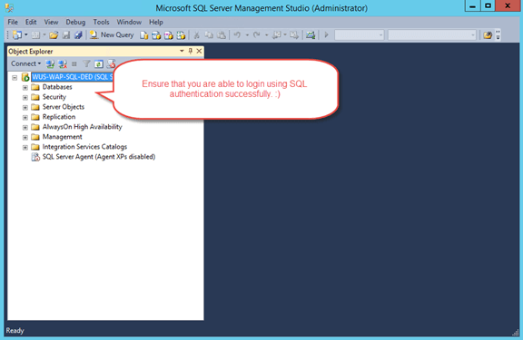 Step 6: Once installation is complete, open SQL Management Studio and test with both Windows as well as SQL authentication.