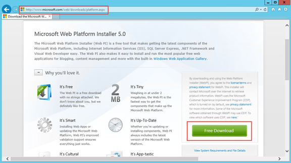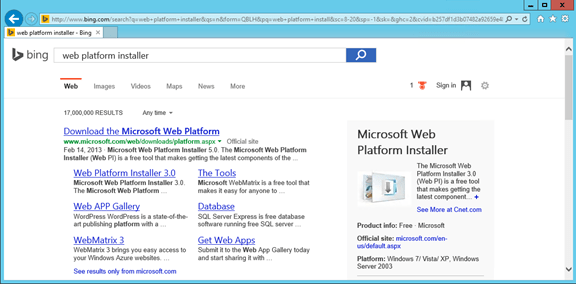 - If you haven’t installed Web Platform Installer, you can download and install it from http://www.microsoft.com/web/downloads/platform.aspx