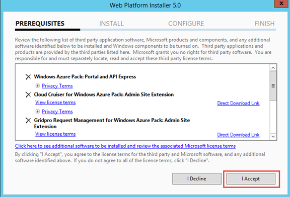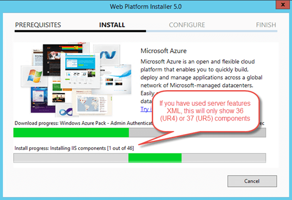 Enable the required roles and features for Windows Azure Pack. I have created another blog on how to easily do this using PowerShell. You can follow the steps from here. Note that this step is optional. If you do not do this, Windows Azure Pack Portal Express deployment will do it for you.