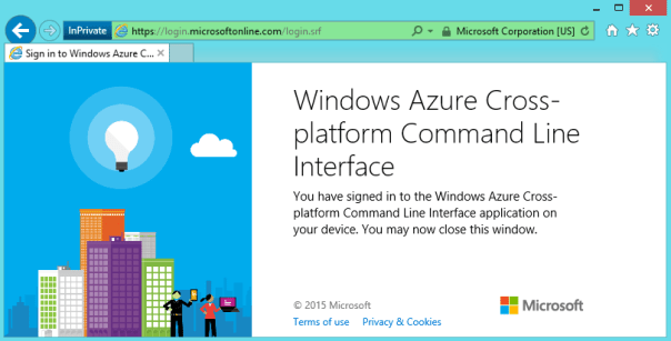 Ensure that CLI installation is successful by checking out the ‘azure’ command. Ensure that you have version 0.9.10 or later.