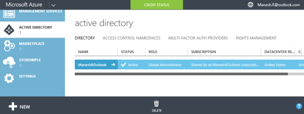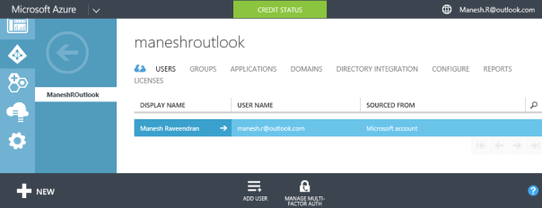 Open Azure Management Portal (https://manage.windowsazure.com/) and navigate to Active Directory