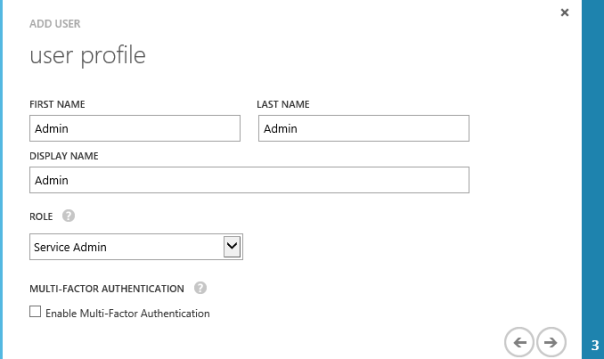 Choose the required user role in the second step. You can read more about roles and their privileges at https://azure.microsoft.com/en-us/documentation/articles/active-directory-assign-admin-roles/