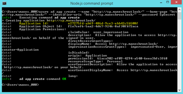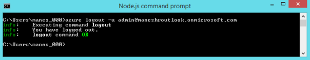 Also, remember to issue the ‘azure logout’ command once you have completed all your interactions with the service.