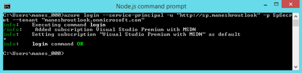 Now you are successfully logged in and can interact with various commands. Check out the account list command note that the user type is shown as service principal.