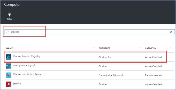 Type Docker in the search box and press Enter, then click on ‘Docker Trusted Registry‘ from the search results