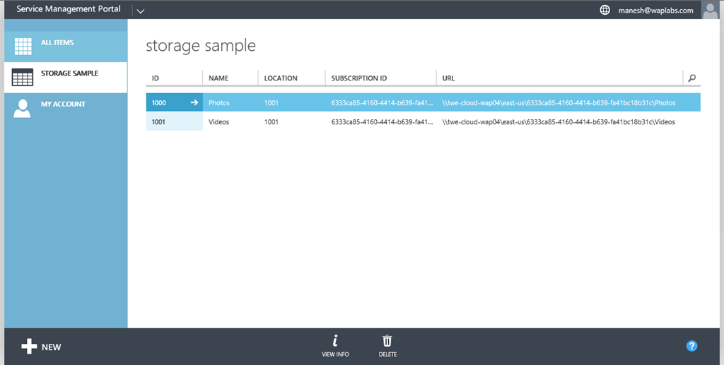 WAP Storage Sample – v0.2 – Enable tenant to upload files